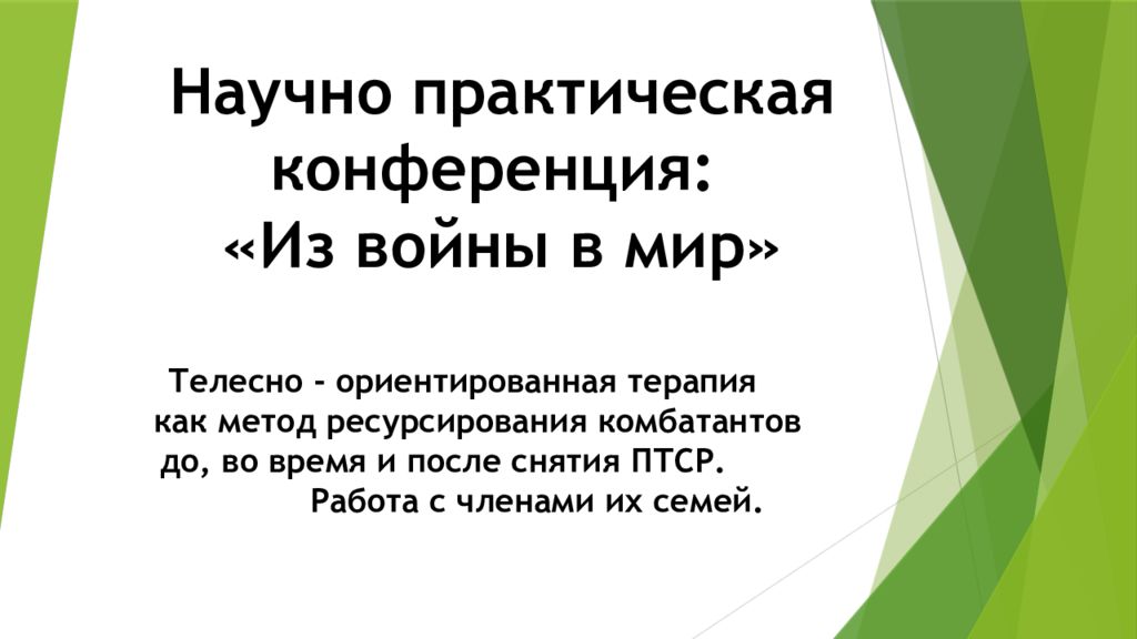 Телесно - ориентированная терапия как метод ресурсирования комбатантов до, во время и после снятия ПТСР. Работа с членами их семей.