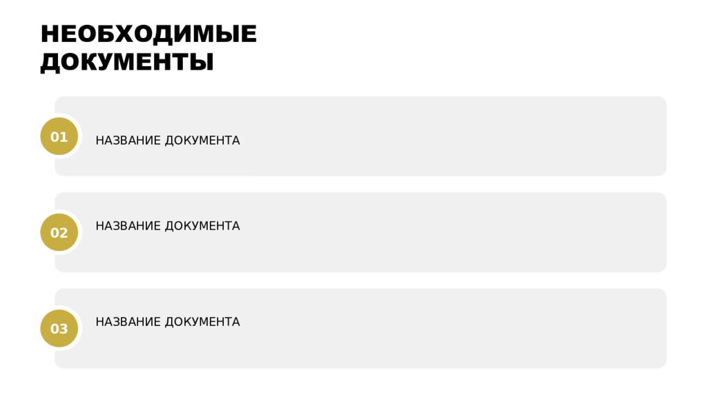 НАЗВАНИЕ ДОКУМЕНТА 01 НАЗВАНИЕ ДОКУМЕНТА 02 НАЗВАНИЕ ДОКУМЕНТА 03 НЕОБХОДИМЫЕ ДОКУМЕНТЫ