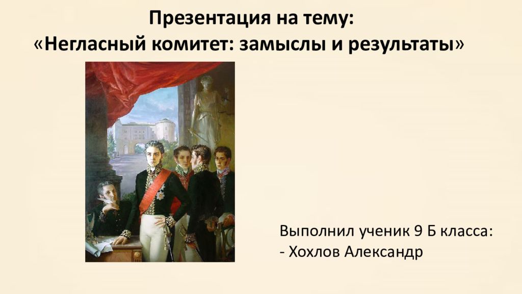 Презентация на тему: « Негласный комитет: замыслы и результаты » Выполнил ученик 9 Б класса: - Хохлов Александр