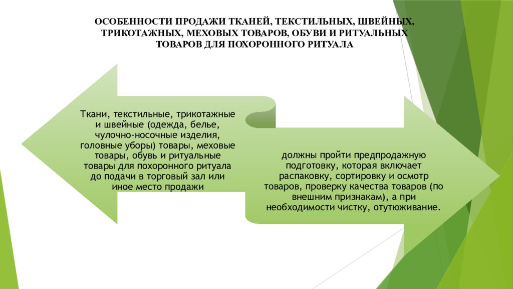ОСОБЕННОСТИ ПРОДАЖИ ТКАНЕЙ, ТЕКСТИЛЬНЫХ, ШВЕЙНЫХ, ТРИКОТАЖНЫХ, МЕХОВЫХ ТОВАРОВ, ОБУВИ И РИТУАЛЬНЫХ ТОВАРОВ ДЛЯ ПОХОРОННОГО РИТУАЛА