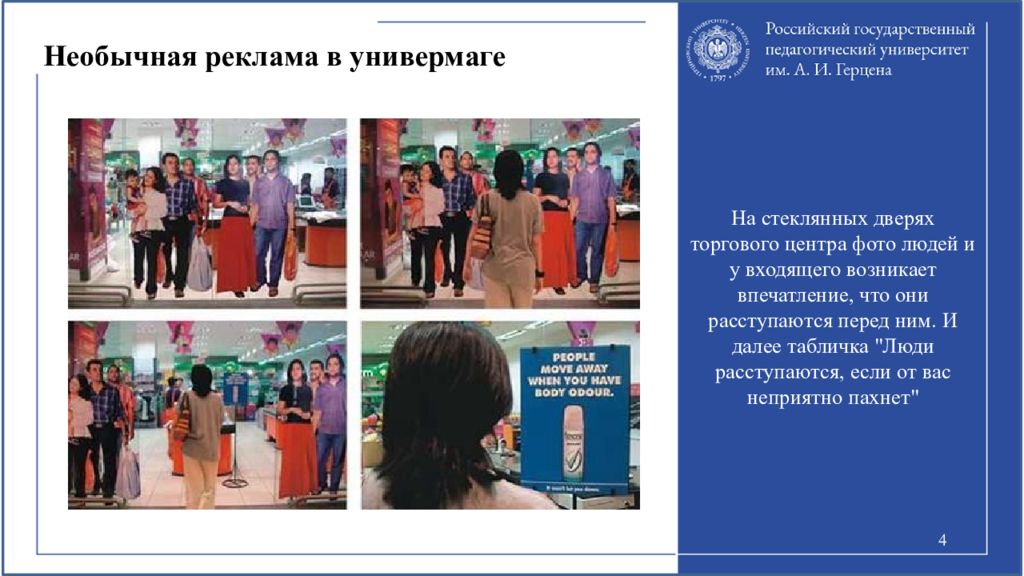 Слайд 4: Необычная реклама в универмаге
