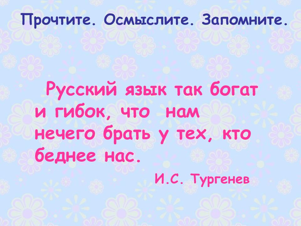 Русский язык так богат и гибок, что нам нечего брать у тех, кто беднее нас. И.С. Тургенев