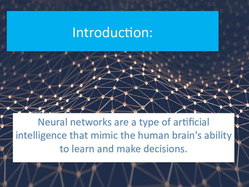 N eural networks are a type of artificial intelligence that mimic the human brain's ability to learn and make decisions.