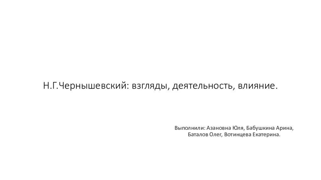 Первый слайд презентации: Н.Г.Чернышевский : взгляды, деятельность, влияние