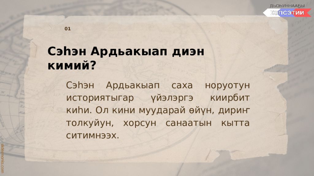 Слайд 4: Сэһэн Ардьакыап диэн кимий ?