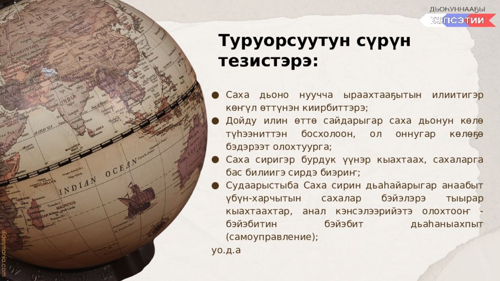 Слайд 8: Туруорсуутун сүрүн тезистэрэ: