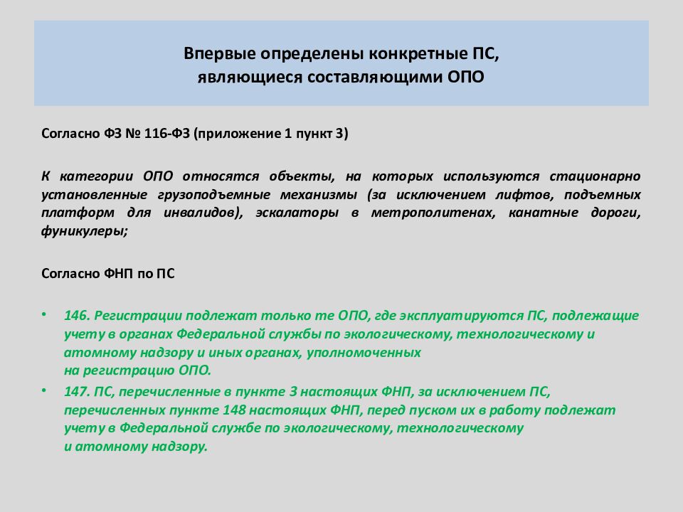 Слайд 3: Не подлежат учету (пункт 148) и не являются составляющими ОПО (пункт 146) следующие ПС: