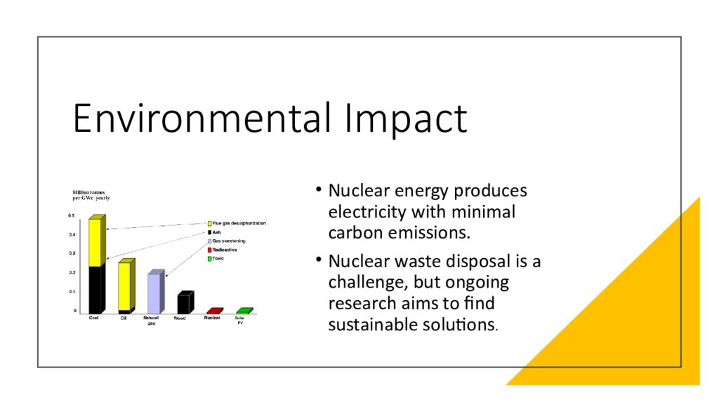 Nuclear energy produces electricity with minimal carbon emissions. Nuclear waste disposal is a challenge, but ongoing research aims to find sustainable solutions.