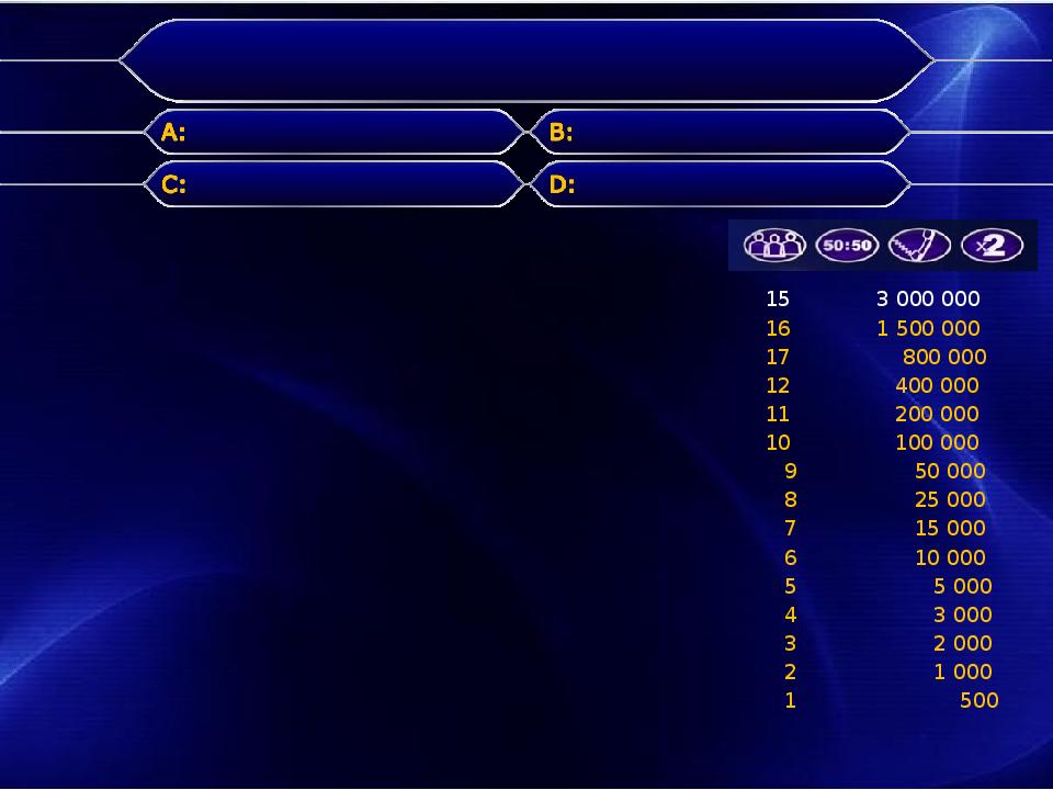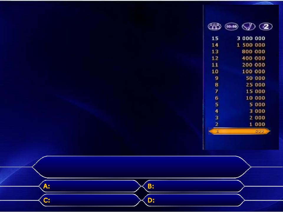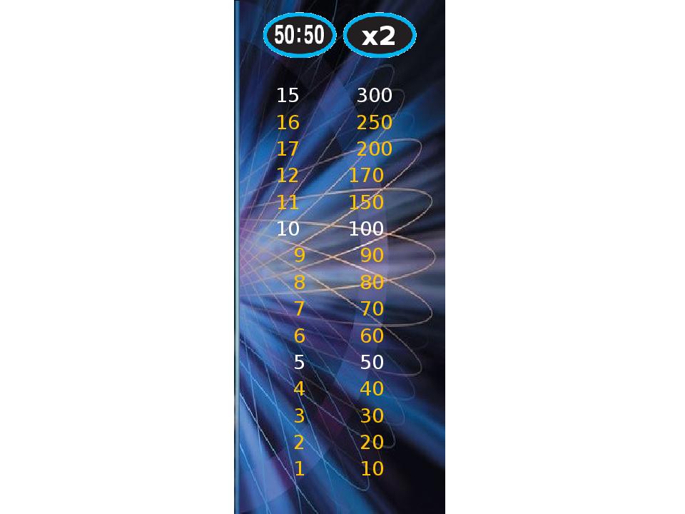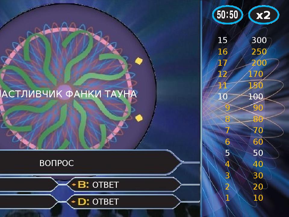 300 250 200 12 170 11 150 10 100 9 90 8 80 7 70 6 60 5 50 4 40 3 30 2 20 1 10 x2 СЧАСТЛИВЧИК ФАНКИ ТАУНА ВОПРОС ОТВЕТ ОТВЕТ ОТВЕТ ОТВЕТ