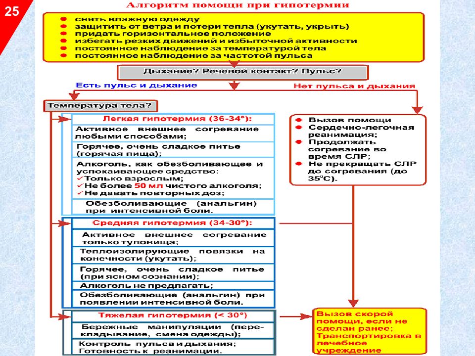 24 ПОМОЩЬ ПРИ ПЕРЕОХЛАЖДЕНИИ ПРИ ПРОВЕДЕНИИ РЕАНИМАЦИИ ПОСТРАДАВШЕМУ, КЛИНИЧЕСКАЯ СМЕРТЬ У КОТОРОГО НАСТУПИЛА В РЕЗУЛЬТАТЕ ТЯЖЁЛОЙ ГИПОТЕРМИИ, НЕОБХОДИМО СЛЕДОВАТЬ ПРАВИЛУ: «ПАЦИЕНТ НЕ СЧИТАЕТСЯ УМЕРШИМ, ПОКА ТЕМПЕРАТУРА ЕГО ТЕЛА НЕ ДОСТИГЛА 35°С».