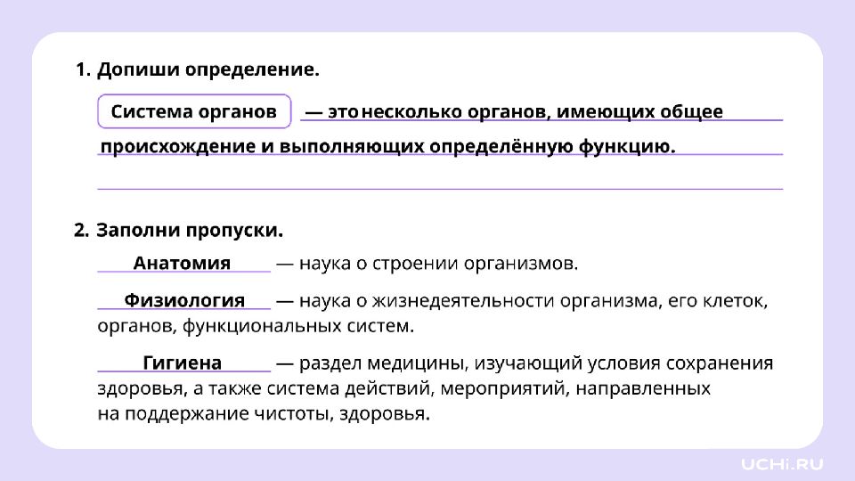 Органы, которые вместе выполняют ту или иную работу, образуют систему органов.