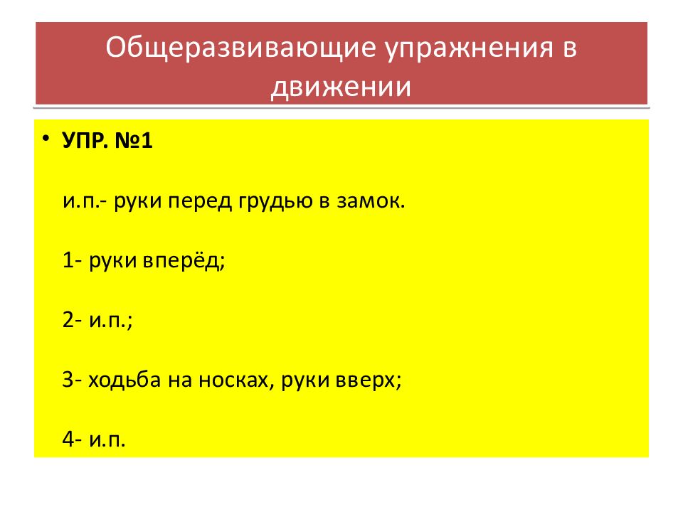 Первый слайд презентации: Общеразвивающие упражнения на месте