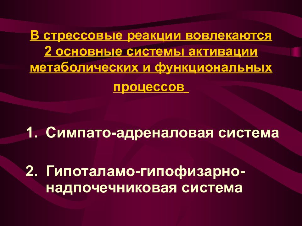 Слайд 17: В стрессовые реакции вовлекаются 2 основные системы активации метаболических и функциональных процессов