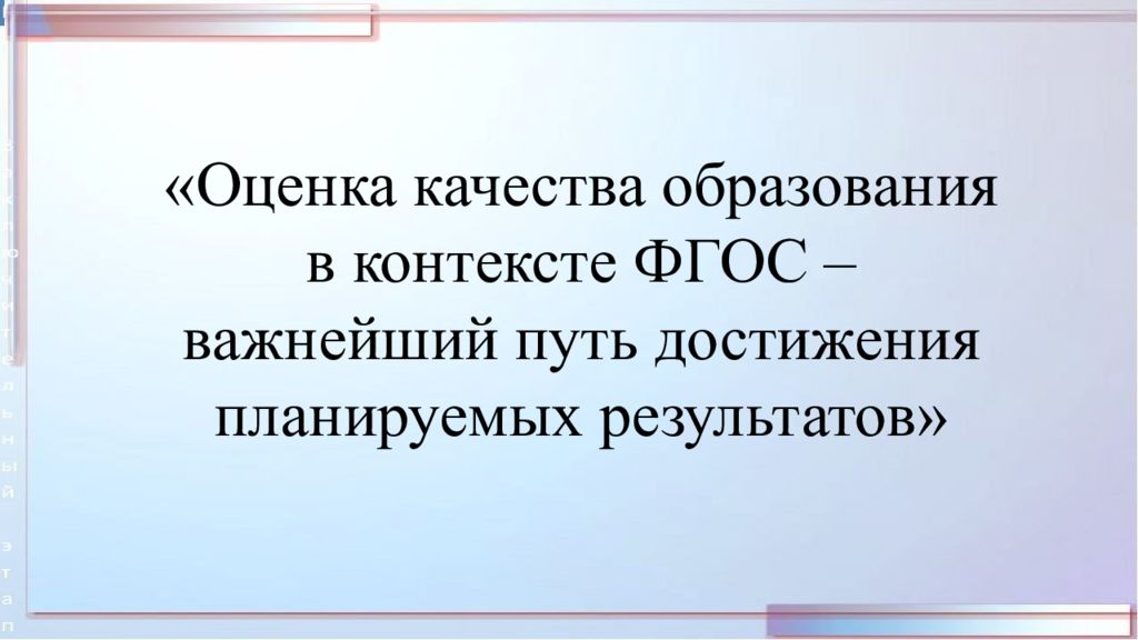 «Оценка качества образования в контексте ФГОС – важнейший путь достижения планируемых результатов»