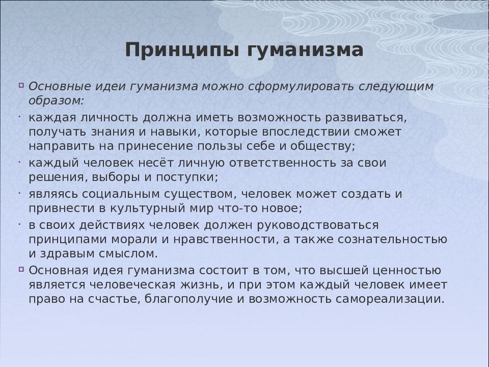 Слайд 10: Принципы гуманизма