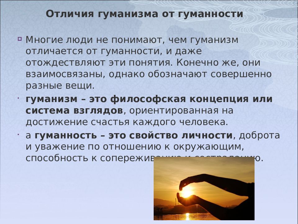 Слайд 14: Отличия гуманизма от гуманности
