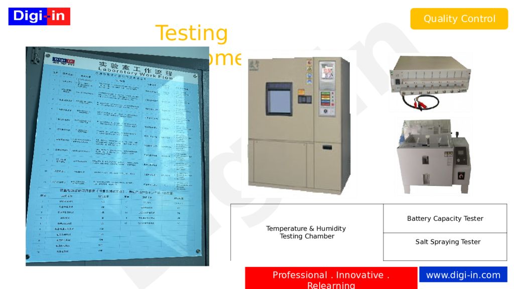 Testing Equipments Temperature & Humidity Testing Chamber Battery Capacity Tester Salt Spraying Tester Quality Control