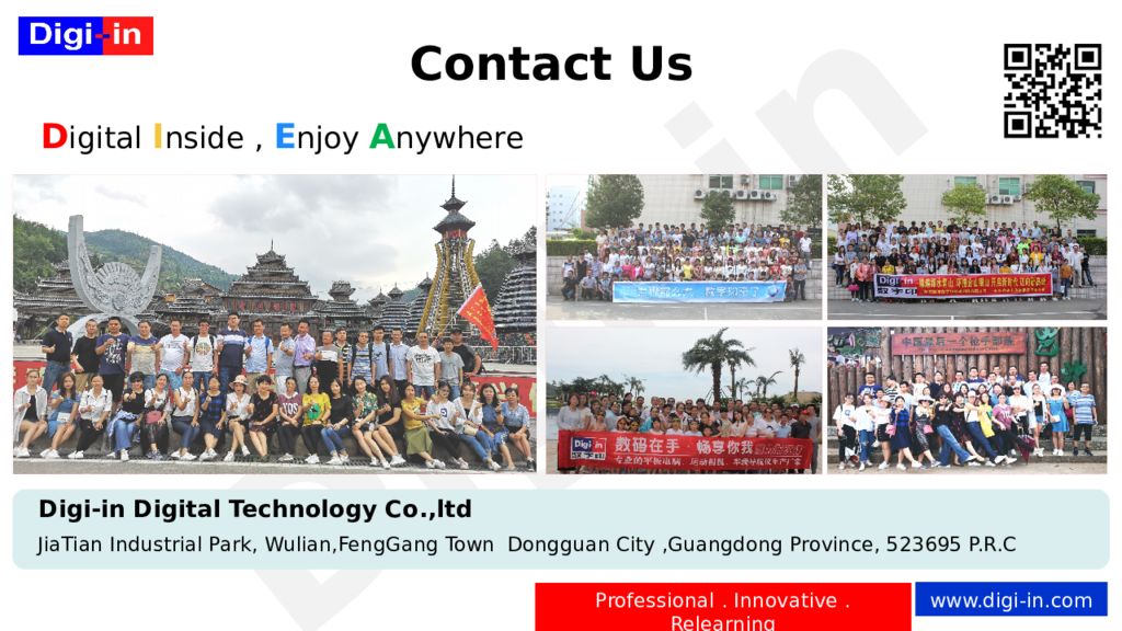 JiaTian Industrial Park, Wulian,FengGang Town Dongguan City,Guangdong Province, 523695 P.R.C Contact Us Digi-in Digital Technology Co.,ltd D igital I nside, E njoy A nywhere