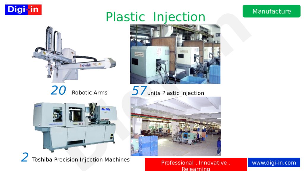 Plastic Injection 20 Robotic A rms 2 Toshiba Precision I njection M achines 57 units Plastic Injection Machines Manufacture