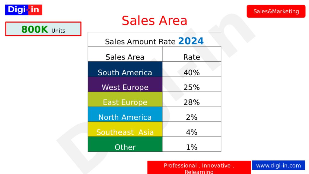 Sales Amount Rate 20 2 4 Sales Area Rate South America 40% West Europe 25% East Europe 28% North America 2% Southeast Asia 4% Other 1% Sales Area 800K Units Sales&Marketing