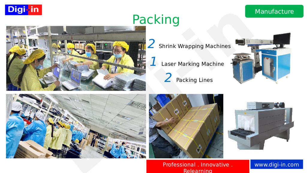 Packing 2 Shrink Wrapping Machines 1 Laser Marking Machine 2 Packing Lines Manufacture
