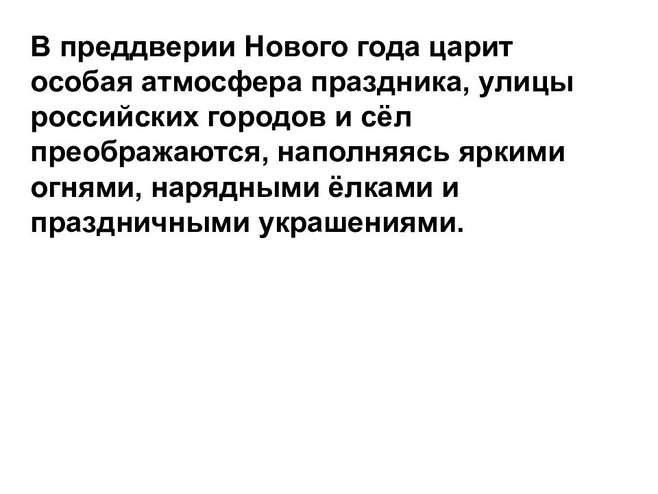 В преддверии Нового года царит особая атмосфера праздника, улицы российских городов и сёл преображаются, наполняясь яркими огнями, нарядными ёлками и праздничными украшениями.