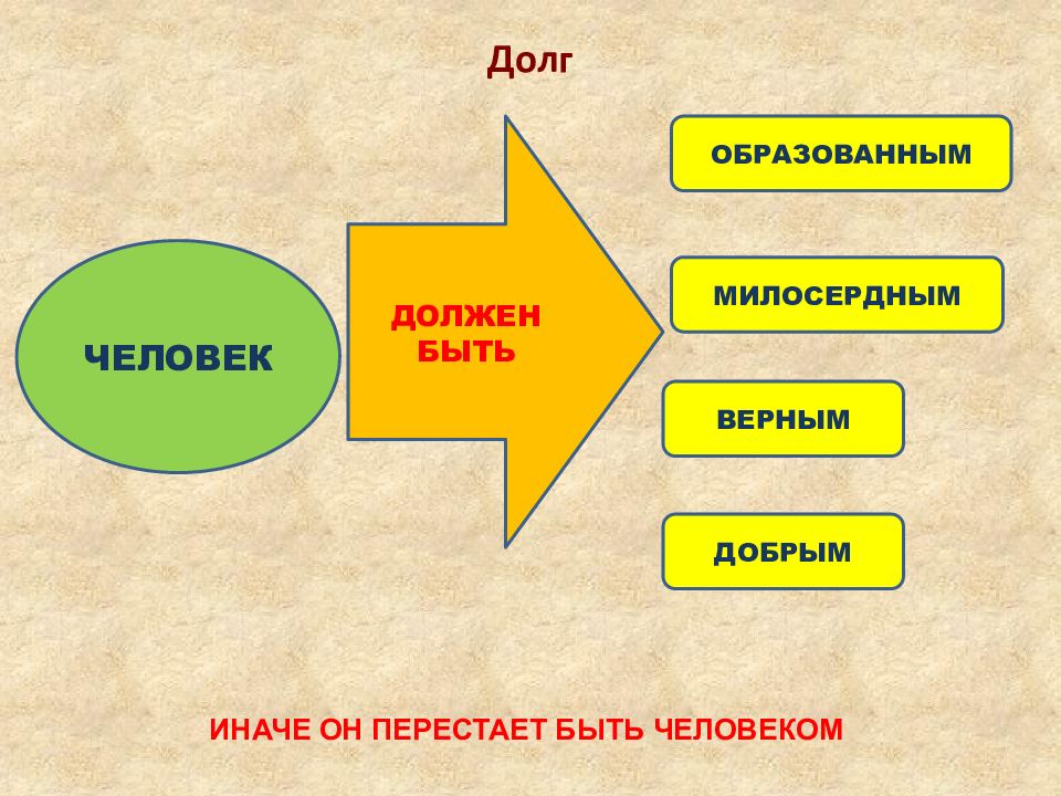 Долг ИНАЧЕ ОН ПЕРЕСТАЕТ БЫТЬ ЧЕЛОВЕКОМ ЧЕЛОВЕК ОБРАЗОВАННЫМ МИЛОСЕРДНЫМ ВЕРНЫМ ДОЛЖЕН БЫТЬ ДОБРЫМ