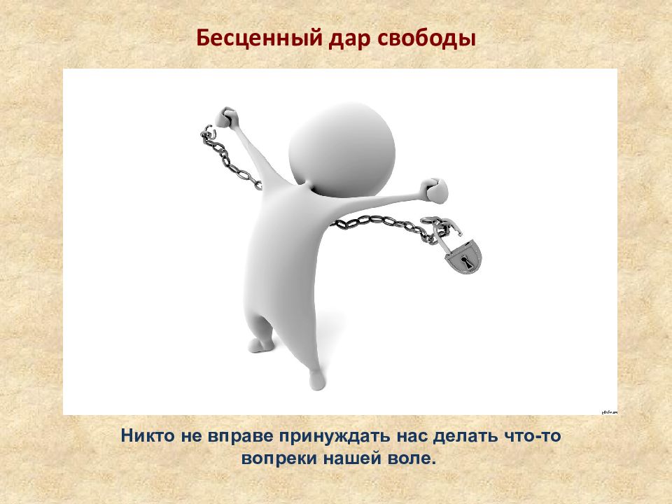 Бесценный дар свободы Никто не вправе принуждать нас делать что-то вопреки нашей воле.