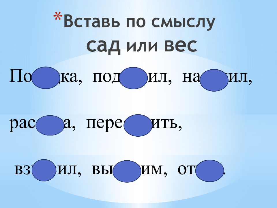 Посадка, подвесил, насадил, рассада, пересадить, взвесил, высадим, отвес.