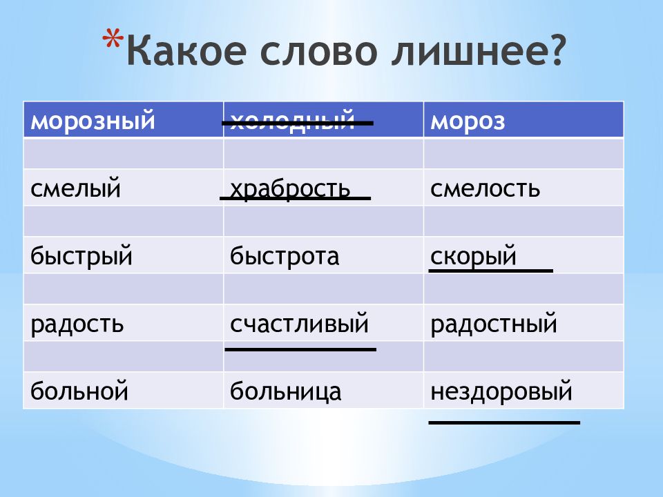 морозный холодный мороз смелый храбрость смелость быстрый быстрота скорый радость счастливый радостный больной больница нездоровый
