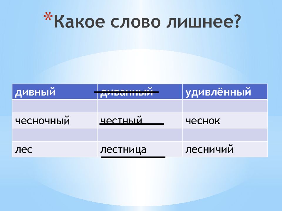дивный диванный удивлённый чесночный честный чеснок лес лестница лесничий