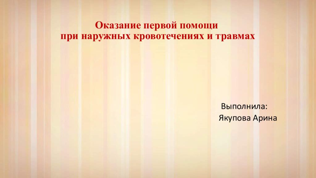Оказание первой помощи при наружных кровотечениях и травмах Выполнила: Якупова Арина