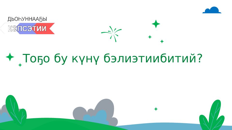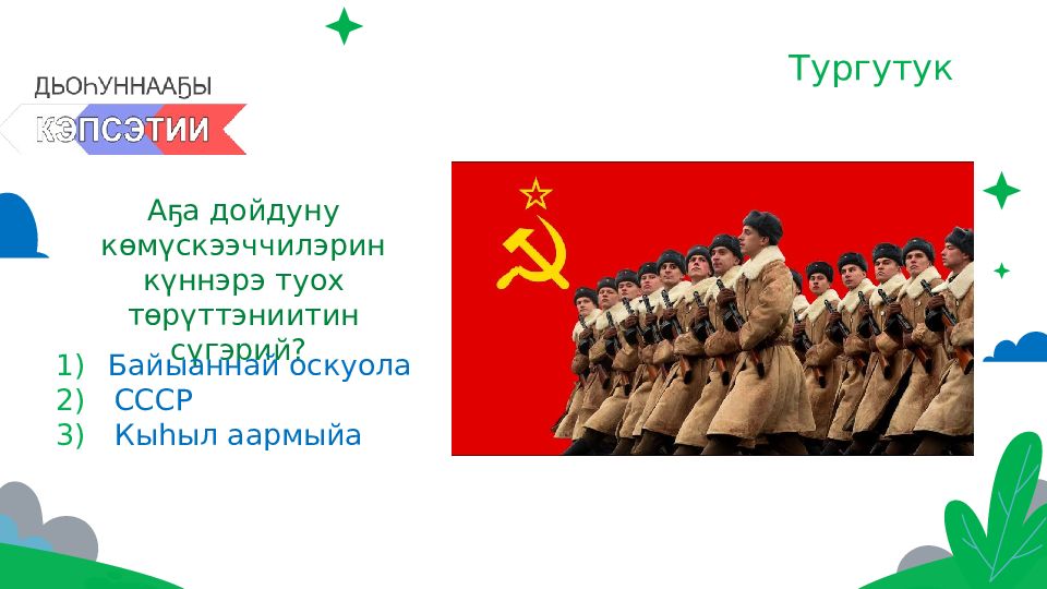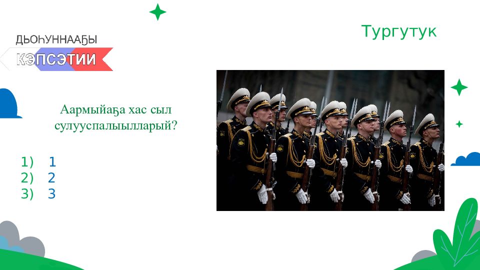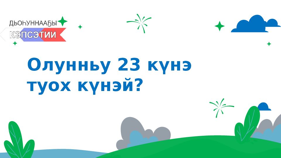 Последний слайд презентации: Олунньу 23 күнэ туох күнэй?: Тургутук