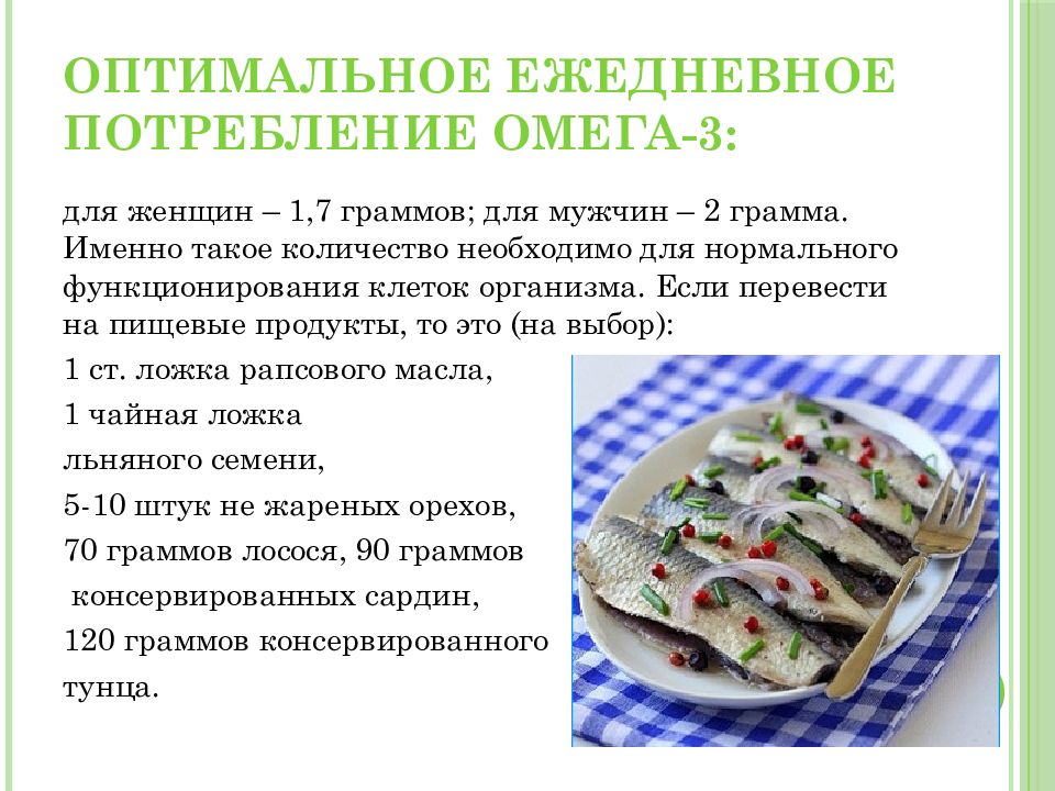 Слайд 9: Оптимальное ежедневное потребление Омега-3: