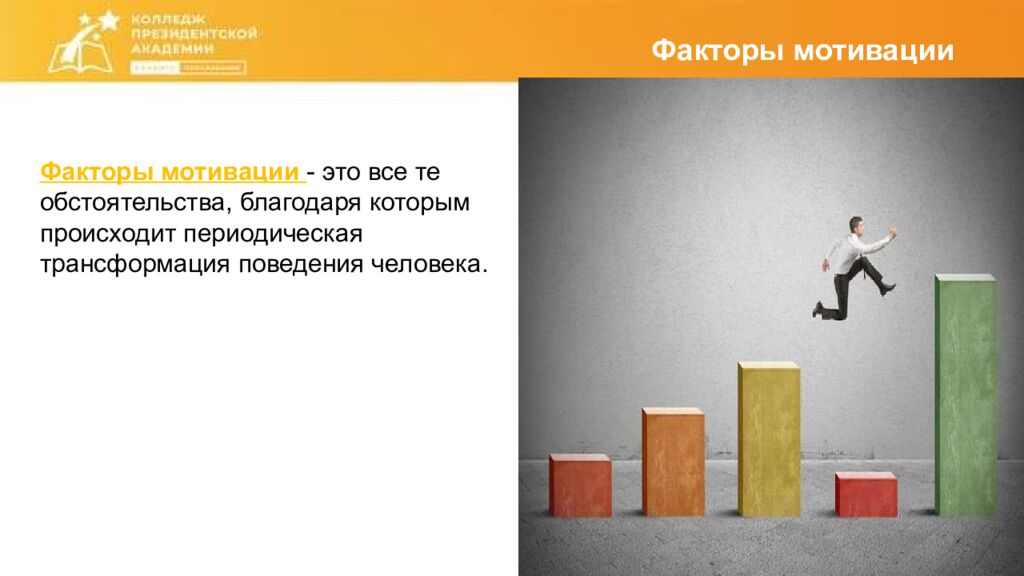 Факторы мотивации Факторы мотивации - это все те обстоятельства, благодаря которым происходит периодическая трансформация поведения человека.