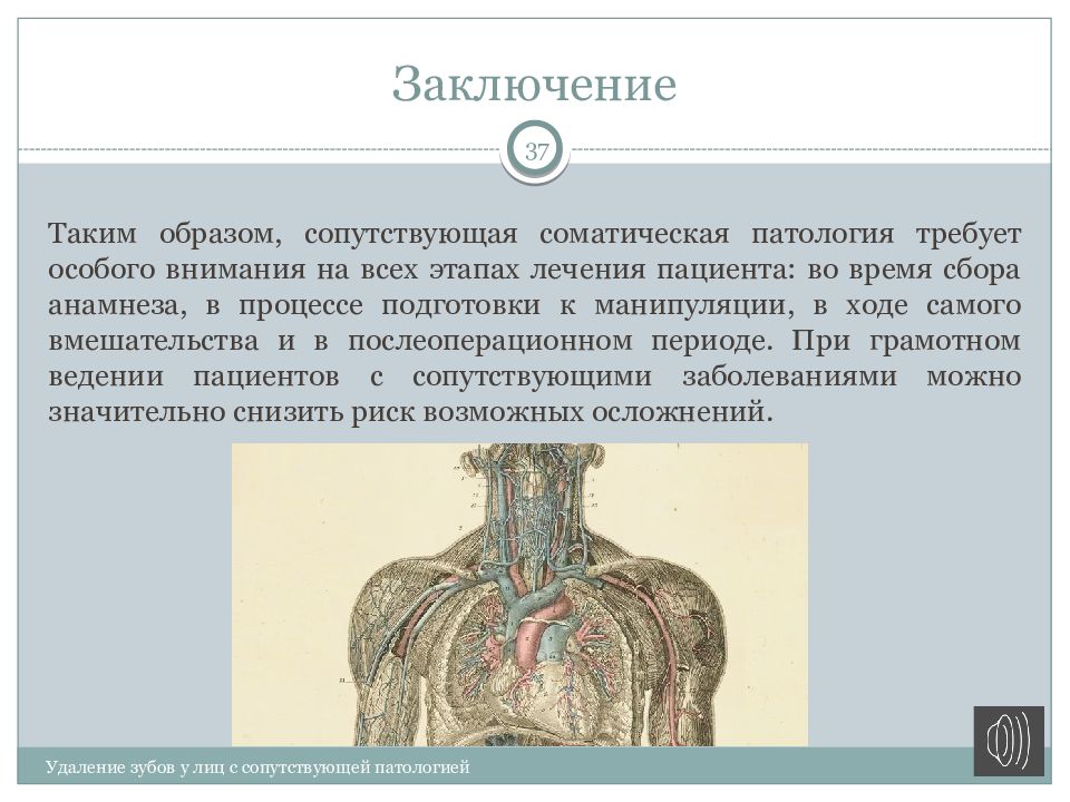 Удаление зубов у лиц с сопутствующей патологией 37 Таким образом, сопутствующая соматическая патология требует особого внимания на всех этапах лечения пациента: во время сбора анамнеза, в процессе подготовки к манипуляции, в ходе самого вмешательства и в послеоперационном периоде. При грамотном ведении пациентов с сопутствующими заболеваниями можно значительно снизить риск возможных осложнений.