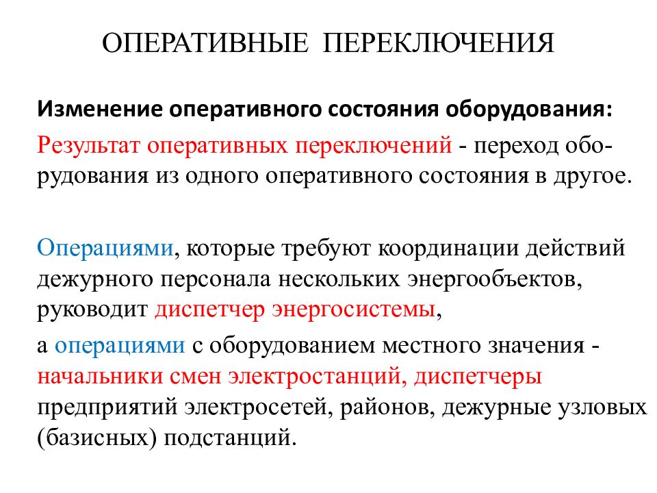 Слайд 3: ОПЕРАТИВНЫЕ ПЕРЕКЛЮЧЕНИЯ