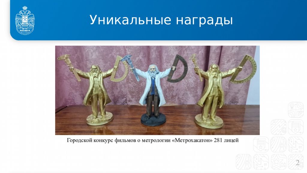 2 Уникальные награды Городской конкурс фильмов о метрологии « Метрохакатон » 281 лицей