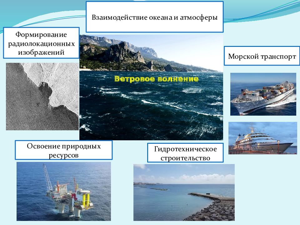 Взаимодействие океана и атмосферы Морской транспорт Гидротехническое строительство Освоение природных ресурсов Формирование радиолокационных изображений Ветровое волнение