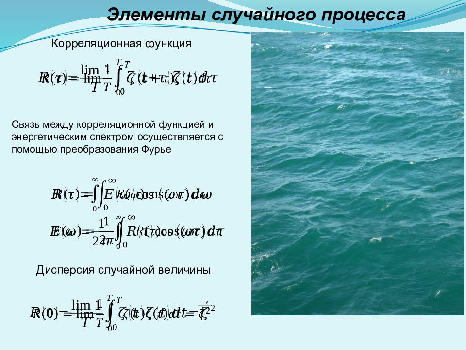Корреляционная функция Связь между корреляционной функцией и энергетическим спектром осуществляется с помощью преобразования Фурье Дисперсия случайной величины Элементы случайного процесса