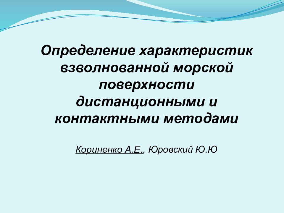 Определение характеристик взволнованной морской поверхности дистанционными и контактными методами Кориненко А.Е., Юровский Ю.Ю