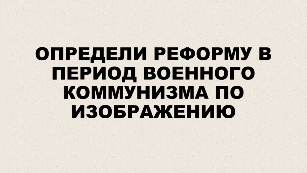 Первый слайд презентации: ОПРЕДЕЛИ РЕФОРМУ В ПЕРИОД ВОЕННОГО КОММУНИЗМА ПО ИЗОБРАЖЕНИЮ