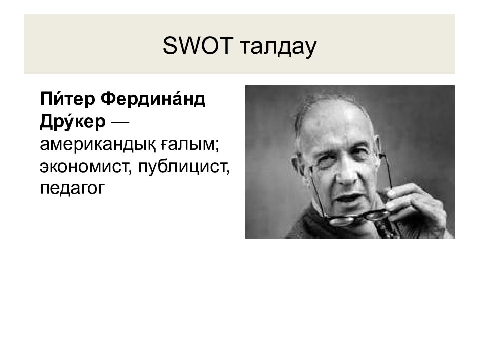 Пи́тер Фердина́нд Дру́кер — американдық ғалым; экономист, публицист, педагог