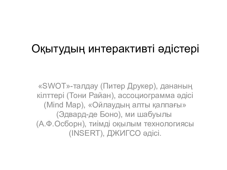 Первый слайд презентации: Оқытудың интерактивті әдістері
