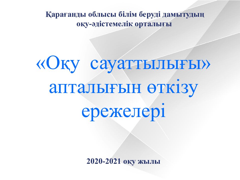 «Оқу сауаттылығы» апталығын өткізу ережелері Қарағанды облысы білім беруді дамытудың оқу- әдістемелік орталығы 2020-2021 оқу жылы