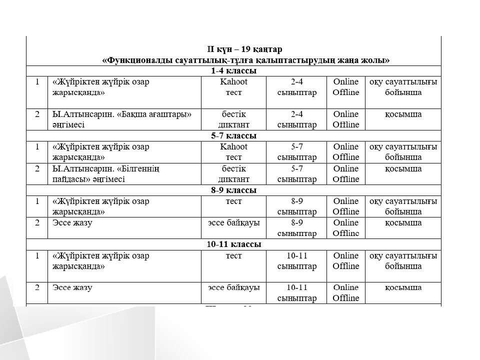 Последний слайд презентации: Оқу сауаттылығы» апталығын өткізу ережелері Қарағанды облысы білім беруді