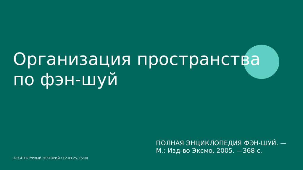Последний слайд презентации: Организация пространства по фэн-шуй АРХИТЕКТУРНЫЙ ЛЕКТОРИЙ / 12.03.25,