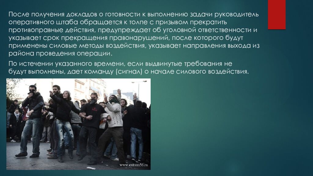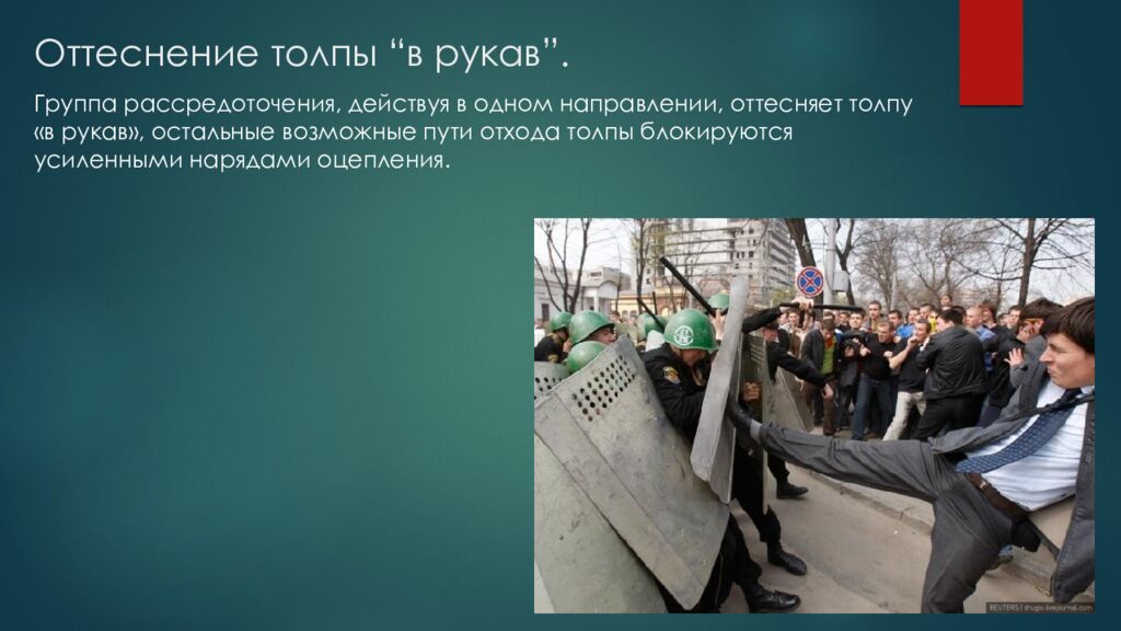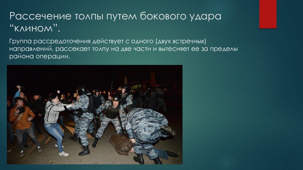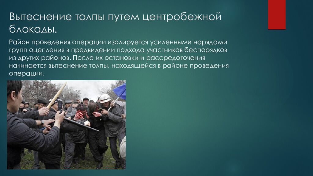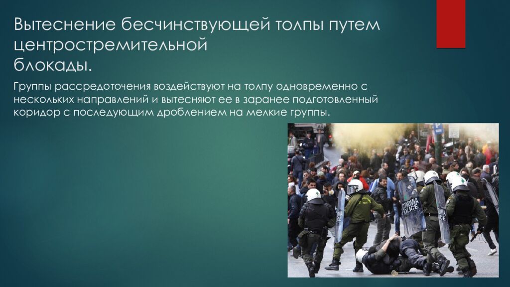 Слайд 15: Вытеснение бесчинствующей толпы путем центростремительной блокады