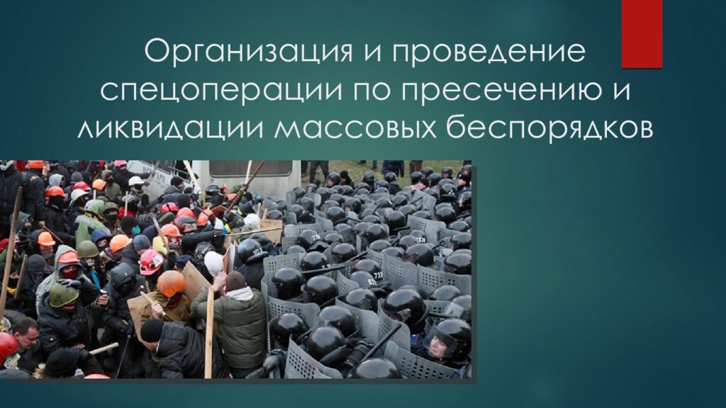 Первый слайд презентации: Организация и проведение спецоперации по пресечению и ликвидации массовых беспорядков