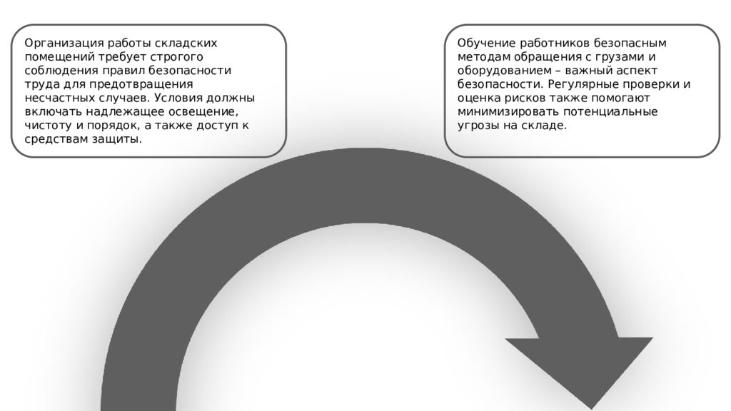Организация работы складских помещений требует строгого соблюдения правил безопасности труда для предотвращения несчастных случаев. Условия должны включать надлежащее освещение, чистоту и порядок, а также доступ к средствам защиты. Обучение работников безопасным методам обращения с грузами и оборудованием – важный аспект безопасности. Регулярные проверки и оценка рисков также помогают минимизировать потенциальные угрозы на складе.